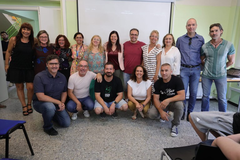 52 joves d’entre 16 i 21 anys han format part d’un programa que ha acomiadat el curs 2022 – 2023 amb un acte a la seu del SLTET de Castelldefels · L’alcaldessa de Castelldefels, Maria Miranda, i els tutors de cadascuna de les quatre modalitats de PFI-PTT que s’ofereixen a la ciutat han participat en la cloenda
