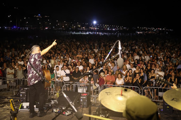 Més de 5.000 persones es van apropar a la platja, a l’alçada del pàrquing del carrer Mèxic, per gaudir de la Festa de comiat de l’estiu · Va comptar amb actuacions musicals i un espectacle de drons que va fer les delícies dels presents