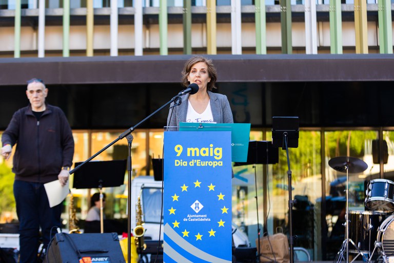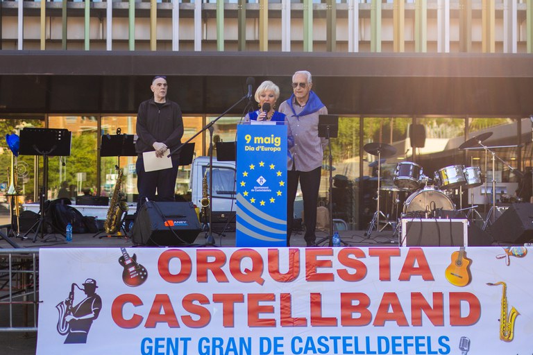 Durant la tarda, va tenir lloc l’acte institucional de celebració del Dia d’Europa que va començar amb l’himne d’Europa, melodia que simbolitza la Unió Europea i procedeix de la Novena Simfonia que va composar Beethoven l’any 1823, posant música a l’Oda a la Alegria escrita per Schiller l’any 1785, que expressa la visió idealista de la fraternitat entre els éssers humans, visió que Beethoven compartia. El manifest del Dia d’Europa el van llegir dos representants de l’Associació Casal Rafael Casanova i membres de Castellband, orquestra que va amenitzar durant la tarda el Ball de la Gent Gran.