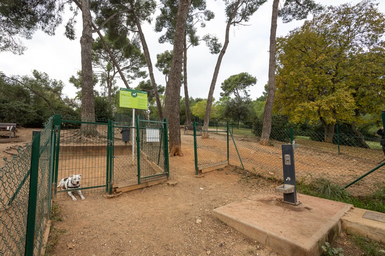 - Compta amb una zona agility, doble porta, font, més bancs (s’ha passat de 6 a 8), més papereres (en tenia 2, ara compta amb 4), nou enllumenat LED, arbrat i ombratge (pins), etc.