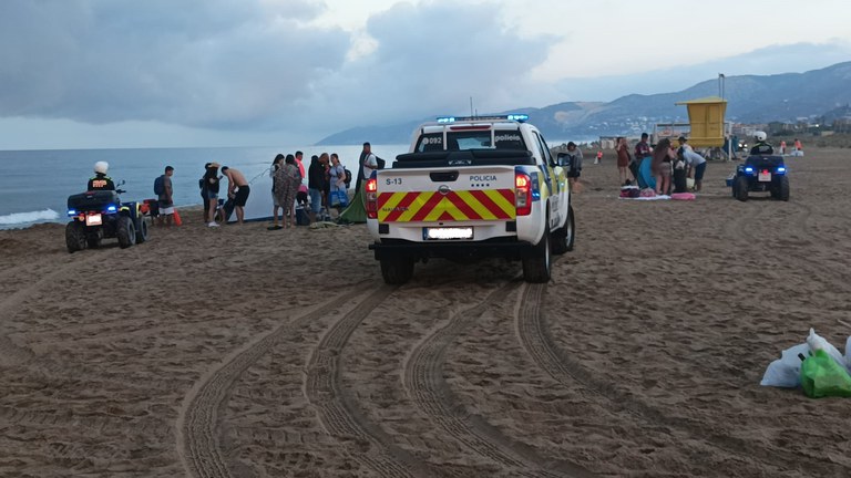 El dispositiu especial de neteja de la platja (de 6:30 a 9:30 hores del 24 de juny) va treballar sense problemes i va comptar, com és habitual, amb presència policial per facilitar el desallotjament de la platja i la seva feina.