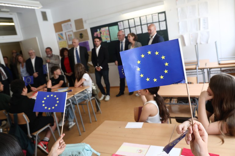 Enguany l’Ajuntament i concretament l’àrea d’Internacionalització posa èmfasi en la celebració als centres educatius. Un total de 22 centres educatius: deu centres d’Infantil i Primària, quatre Instituts de Secundària, quatre centres concertats i un centre privat, l’Escola d’Adults, el centre PFI-PTT i l’Escola Municipal de Dansa inicien la jornada escolar amb la celebració del Dia d’Europa, posant la bandera d’Europa en un lloc visible del centre educatiu, alhora que sona l’himne d’Europa. L’Alcalde, Manuel Reyes, i la 5a. Tinenta d’Alcaldia i Regidora de Presidència, Marian Ortega, inicien la jornada acompanyant a l’alumnat d’Erasmus + de l’Institut Josep Lluís Sert per celebrar el dia d’Europa.