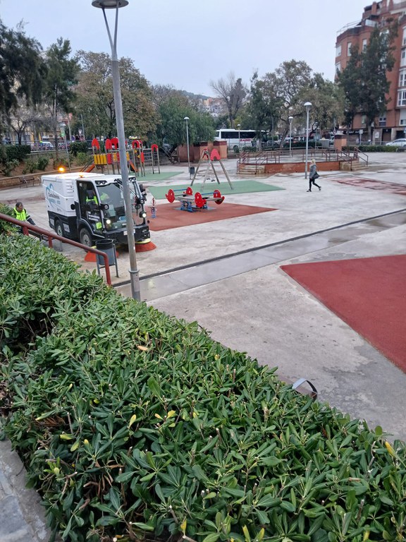 El dispositiu també compta amb dos equips manuals encarregats de l’escombrat manual i amb bufador. A més, s’encarreguen de buidar les papereres per permetre la seva posterior neteja amb aigua a pressió i retiren manualment enganxines i publicitat de fanals i senyals.