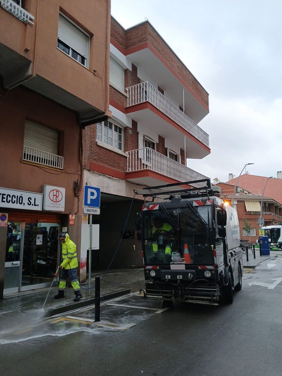 Els serveis de neteja municipals, formats per sis equips, continuen duent a terme tasques de neteja intensiva en diversos carrers de la ciutat.