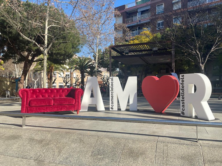 Del 12 al 14 de febrer s’han instal·lat 3 photocalls amb la paraula AMOR a la plaça de l'Església, la plaça de l'Estació i la plaça Neus Català • “Per Sant Valentí, Enamora’t a Castelldefels”, una campanya per dinamitzar el comerç local a les xarxes socials