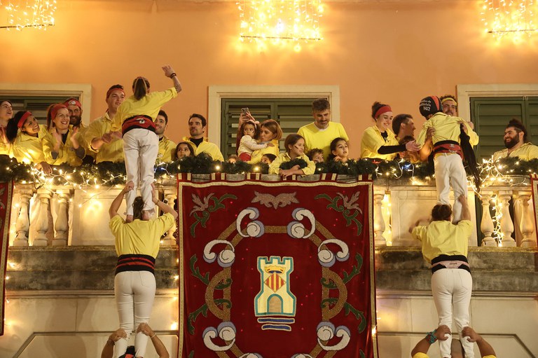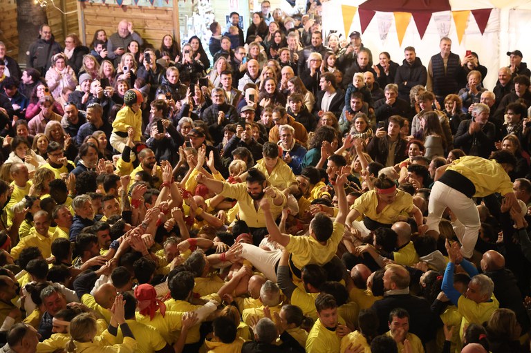 La Festa Major d’Hivern va regalar ahir una de les imatges més esperades: els Castellers de Castelldefels van descarregar un 4de8 sòlid i celebrat, el segon que aconsegueixen com a colla. L’estructura va pujar amb ritme segur i es va completar amb una descarregada ferma, rebent una ovació de tot el públic assistent.