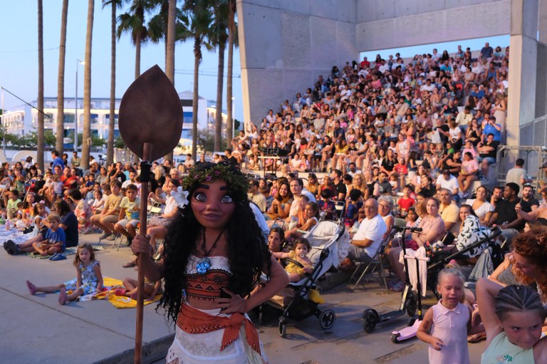 La ciutadania va respondre positivament a la nova iniciativa i unes 600 persones es van apropar a la plaça de les Palmeres per gaudir de la pel·lícula “Vaiana 2”, l’animació prèvia amb els personatges del film i les crispetes de regal · El cicle continua el 13 d’agost amb “Gru 4, el meu dolent preferit”