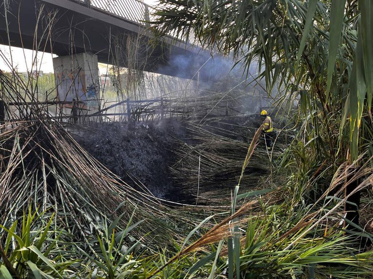 La infraestructura va patir un incendi aquest dimarts i la ràpida intervenció dels serveis d’emergència ha sigut clau en la seva extinció · S’estan investigant les causes d’un foc que va afectar la vegetació situada als voltants de la infraestructura i el propi pont · El pas alternatiu és pel carrer Barcelona