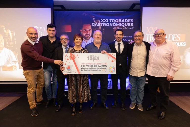 A més, es va lliurar un xec en benefici de l’Associació de Familiars del Centre Ocupacional Caviga (1.270 euros), recaptats durant la recentment acabada Ruta de la Tapa Solidària de Castelldefels.