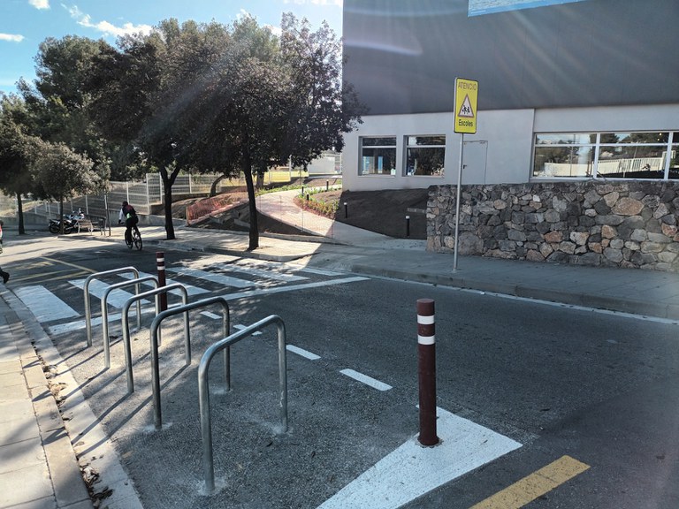 L’actuació més destacada s’ha dut a terme a l’entrada del CEM Can Roca (carrer Doctor Trueta), on s’han instal·lat dos aparcapatinets i un total de 9 aparcabicicletes. A més, s’han col·locat dues noves pilones per tal de protegir la zona. Es tracta d’un treball que té la finalitat de promoure la mobilitat sostenible.