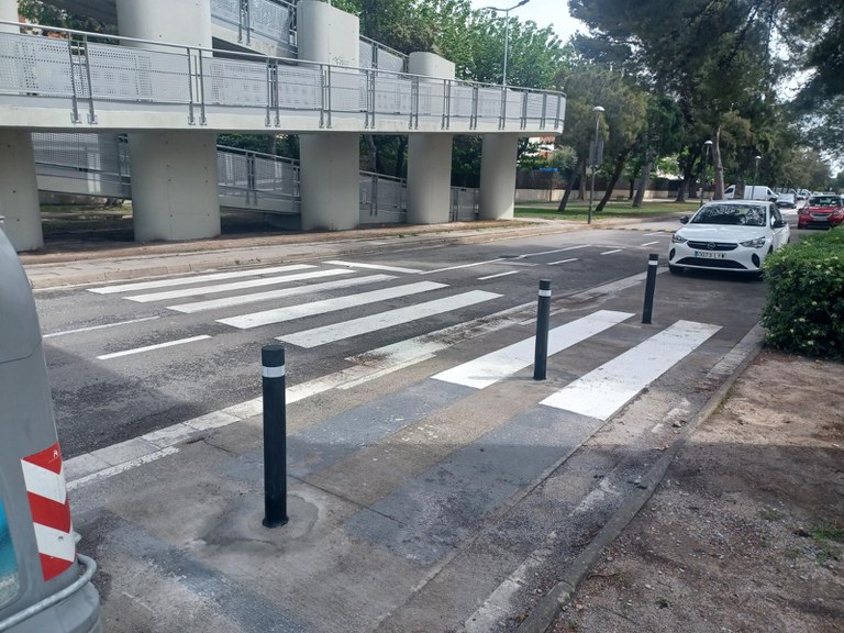 També s’han instal·lat noves pilones a l’avinguda Castelldefels (núm.126) per delimitar un pas de vianants i evitar l’estacionament de vehicles a sobre, per tal de garantir l’accessibilitat dels vianants.