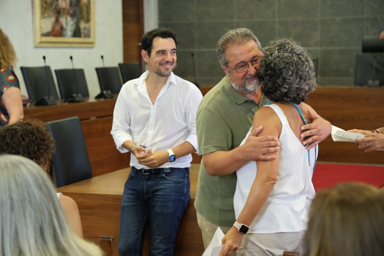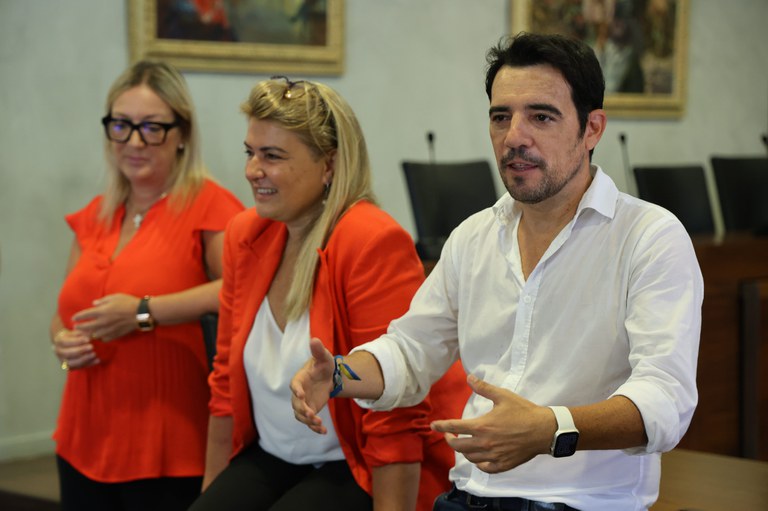 El passat 1 de setembre va tenir lloc l’acte de benvinguda oficial al Saló de plens amb la presència de l’alcalde Manu Reyes, les regidores Mar Sicilia i Cristina Corona i el primer tinent d’alcaldia Fernando Cerpa · L’Ajuntament de Castelldefels, amb la subvenció del Servei d’Ocupació de Catalunya, fa contractacions temporals en funció de les necessitats dels serveis