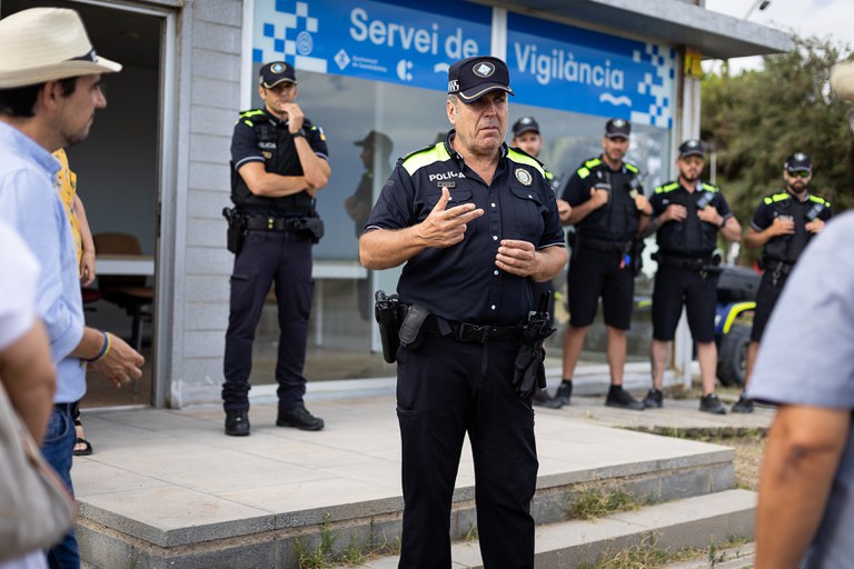La Policia Local reforça la seva presència a la platja durant els mesos d'estiu amb 6 agents per tal de prevenir els furts i garantir el control i sanció de les conductes incíviques que provoquen molèsties a la resta d'usuaris de la platja. Les seves funcions dels agents es realitzen amb quads per sorra, bicicletes i a peu en la zona de vianants. El mòdul d'atenció ciutadana es troba ubicat al pàrquing del Carrer 9.