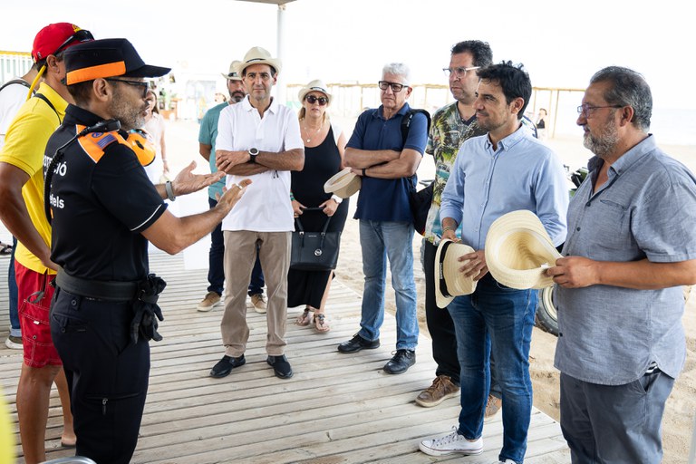 El passat dilluns, una delegació del govern municipal encapçalada per l'alcalde, Manu Reyes, va visitar els diferents serveis que ofereix la platja de Castelldefels per conèixer de primera mà com es desenvolupen les tasques de vigilància, seguretat, informació, cultura i esport.