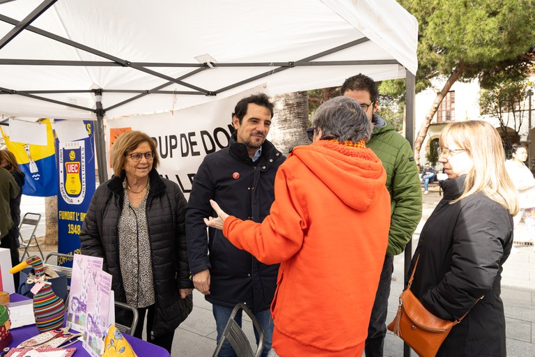 El passat dimecres 13 de març, la seu del Grup de Dones de Castelldefels (Rambla Blas Infante, 15) va acollir una nova edició dels “Tallers al carrer”. Era una exposició i demostració dels tallers d’anglès, dibuix i pintura, patchwork, costura “Arregla’l tu mateixa”, ioga, entapissat, restauració de mobles, taitxí, ganxet i bijuteria que fan les membres del Grup de Dones. Hi van assistir, entre altres, l'alcalde de Castelldefels, Manu Reyes.