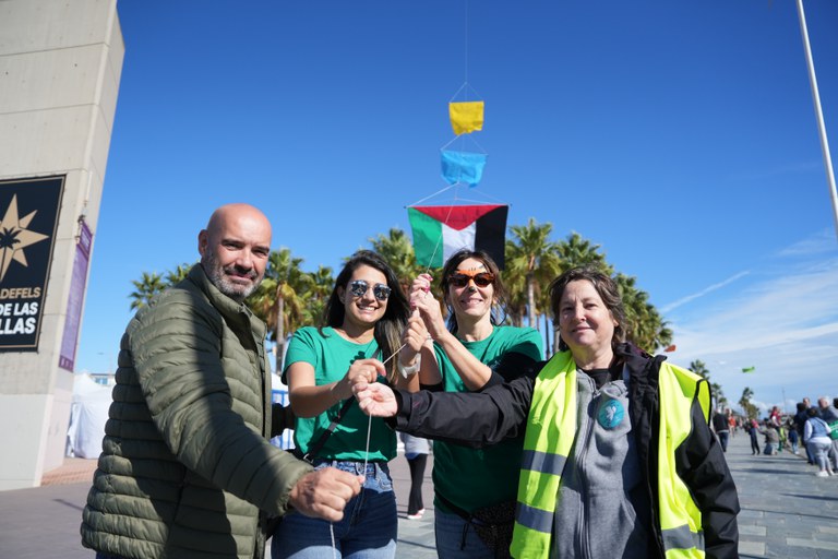 El punt culminant de la jornada, que va començar més tard per culpa de la pluja, va ser la volada d’estels. El cel de la platja de Castelldefels es va omplir de més de 300 estels per reivindicar un món més pacífic i solidari. L’estel d’Educo portava missatges dels infants per la pau i contra la violència.