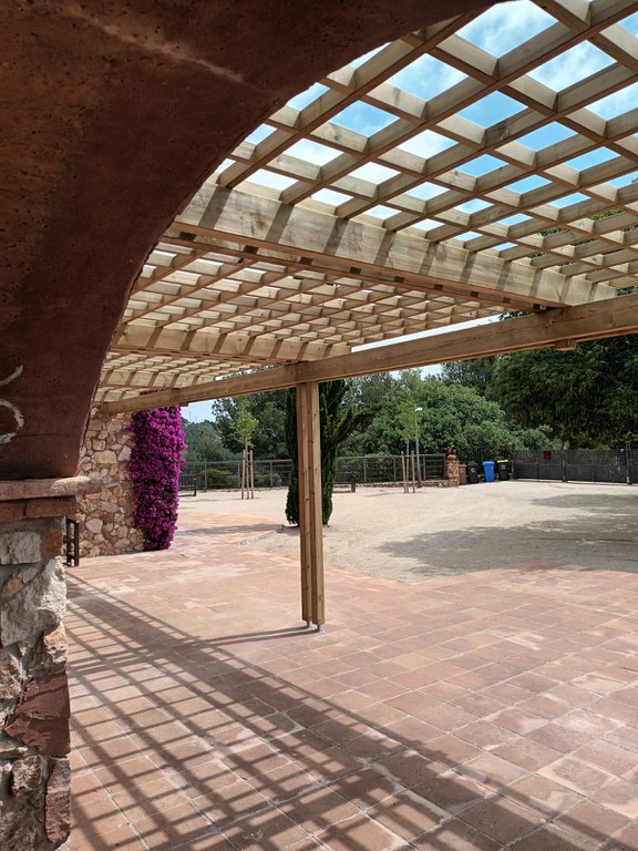 S’ha instal·lat una nova pèrgola que amplia la superfície d’ombra al pati del Centre d’Activitats Ambientals · Amb ella es vol generar un espai exterior que es pugui fer servir també durant els períodes de més calor