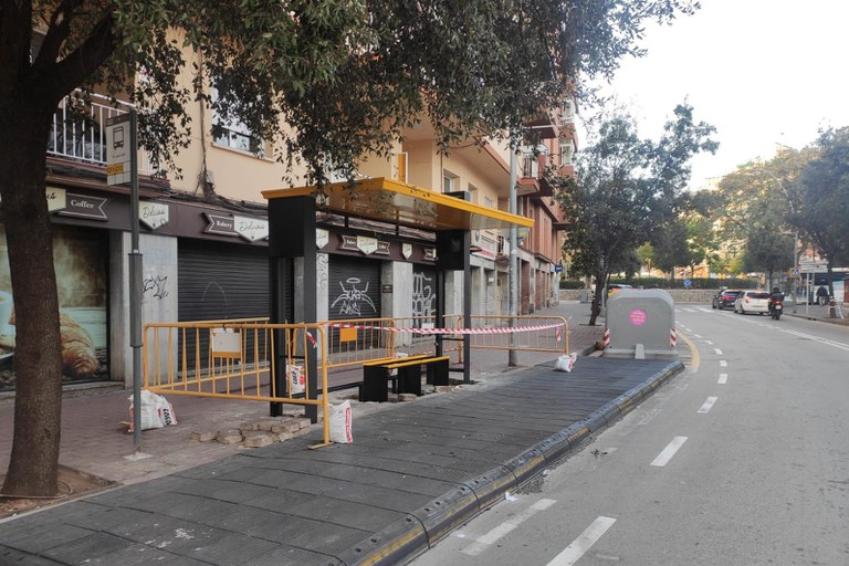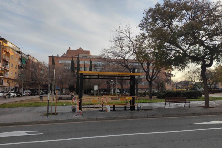 1 marquesina renovada a la parada del passeig Marítim amb passeig de Xile (la teulada d’aquesta parada es va trencar per la ventada del passat 12 de febrer i ara s’instal·la una nova)