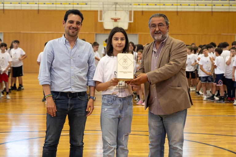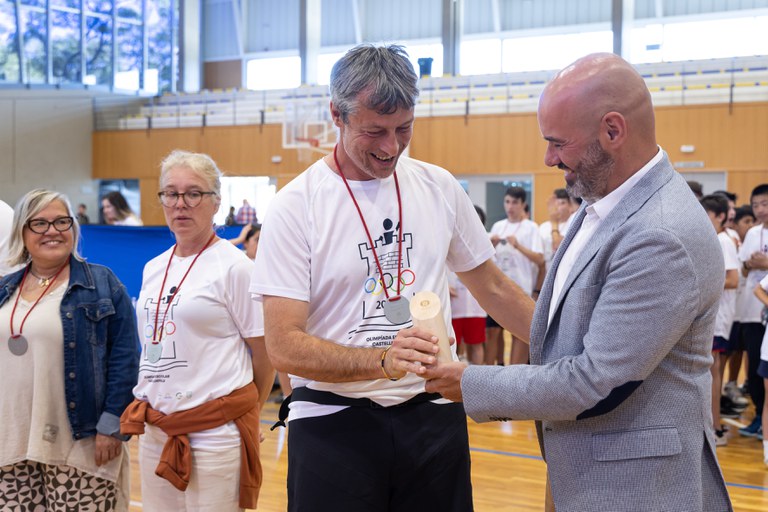 El passat divendres 24 de maig va tenir lloc l’acte de cloenda de l’Olimpíada a les instal·lacions del Poliesportiu Municipal de Can Vinader. La cerimònia va incloure el lliurament de les 132 medalles als i les esportistes que han participat en aquesta primera edició de la competició. Van participar en l’acte, entre altres, l’Alcalde de Castelldefels; Manu Reyes; el Primer Tinent d’Alcaldia, Nico Cerpa; el Regidor d’Educació, Ramon Amador; la Regidora de Presidència, Marian Ortega; el regidor de Medi Ambient, Pedro Paredes; i la regidora de Comunicació, Silvia Cangueiro, entre altres membres del consistori i de les escoles participants (Frangoal, La Ginesta, Petit Món-Felisa Bastida i Sant Ferran).