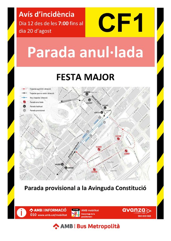 Des del passat dijous 8 d’agost, amb motiu de l’inici de la instal·lació de la fira d’atraccions (Festa Major d’Estiu), a la plaça Teresa Claramunt hi ha una afectació de trànsit a la zona. La línia CF1 es veu afectada per aquesta actuació. El tall entre dijous i dilluns 12 d'agost afecta el sentit Poal i, del 12 al 20 d'agost, afecta els dos sentits de la circulació.