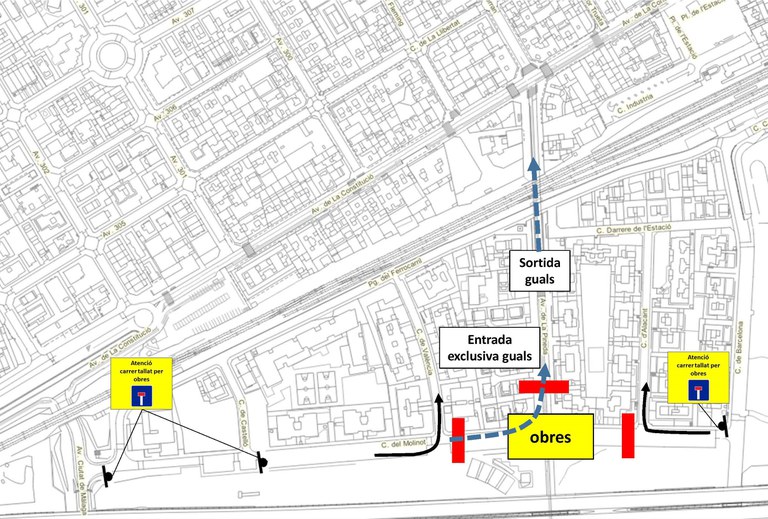 Mentre durin els treballs, es prohibeix el pas a l’avinguda de la Pineda entre avinguda Constitució i carrer Molinot, excepte els guals, vianants i bicicletes. L’accés d’entrada i sortida als guals ubicats en aquest tram es fa per l’avinguda Constitució (sortida) i carrer Molinot (entrada).
