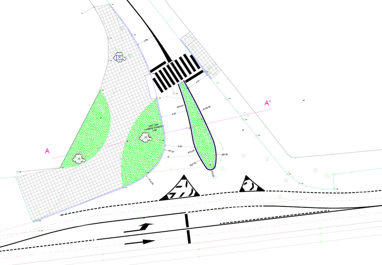 Amb la reforma de la cruïlla també s’ha reurbanitzat la zona destinada als vianants, ampliant les voreres, amb un semàfor amb polsador i creant un espai enjardinat que ha millorat la imatge i el verd de la zona.