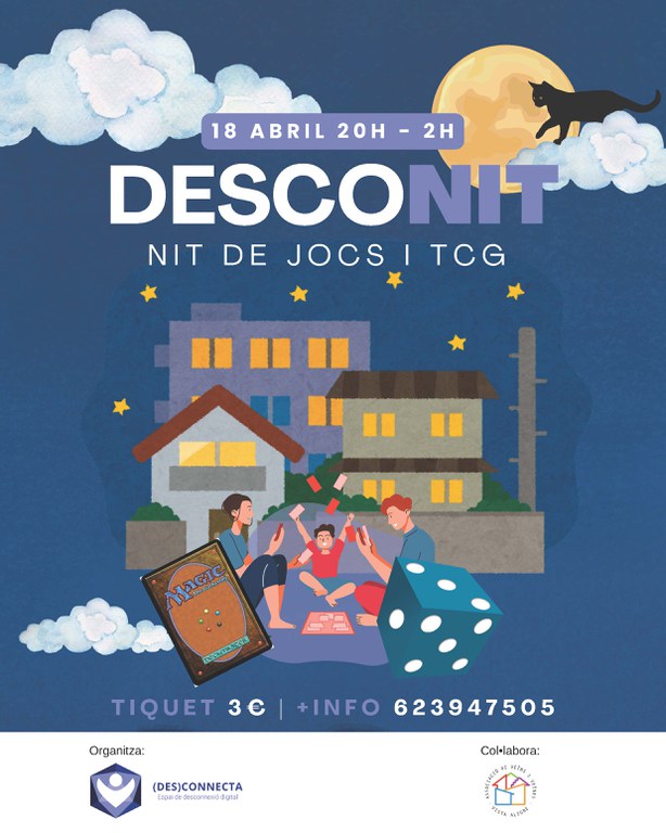 La iniciativa, a càrrec de (Des)Connecta i l’Asociación de Vecinos de Vista Alegre, té lloc al local de l’entitat veïnal a de 20 a 2 hores de la matinada · Una nit plena de jocs de taula i de TCG (Magic, etc)