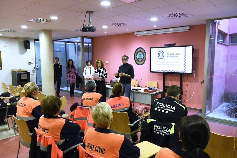 Contractats per l’Ajuntament mitjançant programes de foment de l’ocupació (Plans d’Ocupació), els nous efectius desenvolupen tasques d’informació ciutadana d’actes cívics i incívics, supervisió de mobilari urbà, vetllar pel compliment d’ordenances municipals, etc · El passat dijous, amb dues noves dinamitzadores i una jove tècnica de Comunicació, van ser els protagonistes de l’acte de benvinguda celebrat a la sala d’actes de la Policia Local