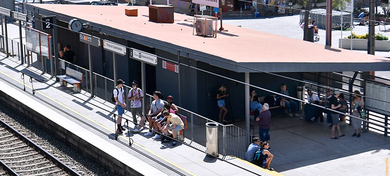 Estació de tren a la zona de la platja de la ciutat de Castelldefels on passa la línia R2Sud de Rodalies de Catalunya.