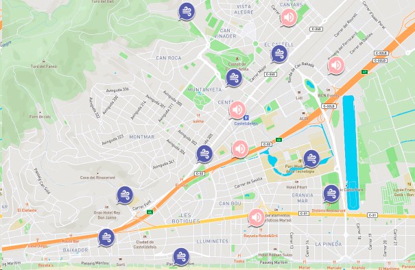 Mapa tecnològic que mostra diferents sensors de la ciutat i les seves dades.