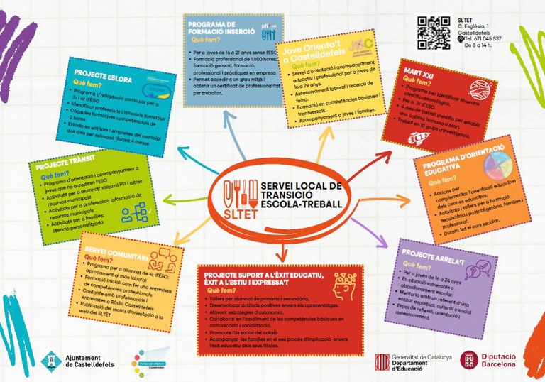 A la presentació també s’han explicat els vuit projectes que es desenvolupen des del SLTET, entres els quals el Projecte Eslora, el projecte Jove Orienta’t a Castelldefels o el programa d’Orientació educativa i professional.