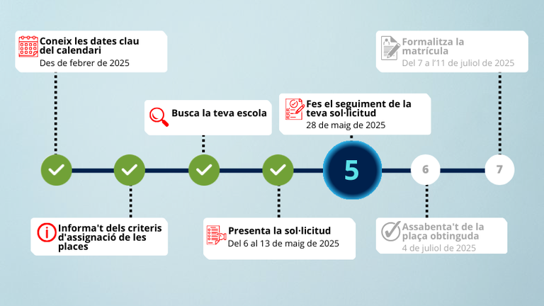 Del 6 al 13 de maig de 2025: presentació de sol·licituds a la web del Departament d'Educació.