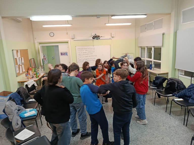 Els jocs, però, no van acabar aquí, perquè amb la intenció de continuar coneixent-nos van jugar al Nus humà, per passar seguidament a una activitat més reflexiva per parelles. Aquesta activitat consistia a facilitar que tant els nois com els veterans poguessin xerrar i comentar experiències o expectatives sobre el Consell. D'altra banda, i mitjançant la dinàmica del termòmetre, es van obrir espais a diferents debats sobre que és el Consell i quin és el seu paper com a consellers o conselleres.