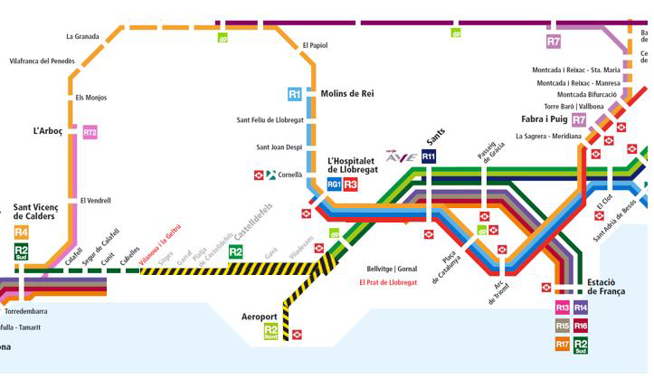 Estas afectaciones incluyen a las estaciones intermedias de las líneas R2 y R2 Sur, Castelldefels centro y Castelldefels Playa (Baixador) incluidas.