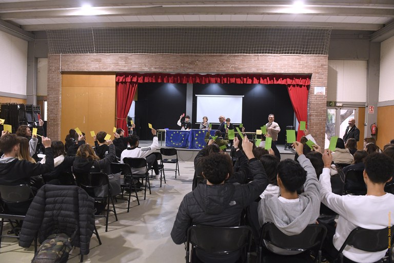 La simulación del Parlamento Europeo, una actividad que organiza el Área de Internacionalización del Ayuntamiento de Castelldefels con el apoyo de la Diputación de Barcelona tuvo lugar el pasado martes 10 de diciembre en el Institut Josep Lluís Sert .
