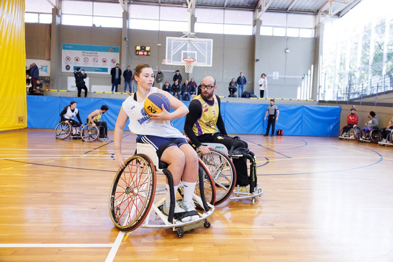 Por su parte, el Polideportivo Municipal de Can Vinader fue el escenario el pasado domingo 11 de enero de partidos de las jornadas 4, 5 y 6 de la Lliga Catalana de baloncesto 3 x 3 en silla de ruedas.