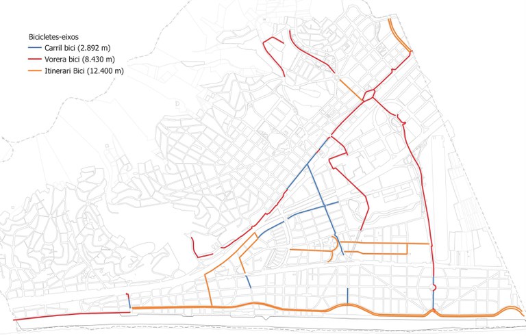 La Junta de Gobierno Local aprueba una nueva red de carriles bici de diversas modalidades con la intención de cohesionar los barrios mediante una movilidad sostenible · Con esta iniciativa, Castelldefels contará con una red ciclable de más de 25 kilómetros (más de 5.000 metros de carril bici, además de los 8.430 metros de acera bici y 12.400 metros de itinerario bici)