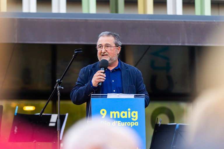 Durante la tarde, tuvo lugar el acto institucional de celebración del Día de Europa que empezó con el himno de Europa, melodía que simboliza la Unión Europea y procede de la Novena Sinfonía que compuso Beethoven en 1823, poniendo música a la Oda en la Alegría escrita por Schiller en 1785, que expresa la visión idealista de la fraternidad entre los seres humanos, visión que Beethoven compartía. El manifiesto del Día de Europa lo leyeron dos representantes de la Asociación Casal Rafael Casanova y miembros de Castellband, orquesta que amenizó durante la tarde el Ball de la Gent Gran.