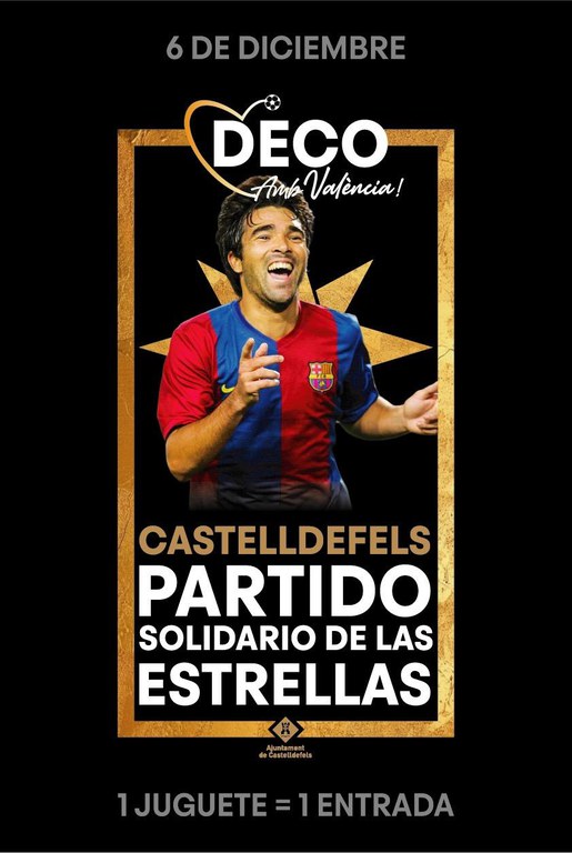 El Ayuntamiento de Castelldefels, dentro de las actividades de la Fiesta Mayor de Invierno y Castrum Fidelis, ha organizado para este viernes, 6 de diciembre, una iniciativa deportiva solidaria de apoyo a las personas afectadas por la DANA en Valencia, un Partido Solidario de las Estrellas donde se recogerán juguetes nuevos.