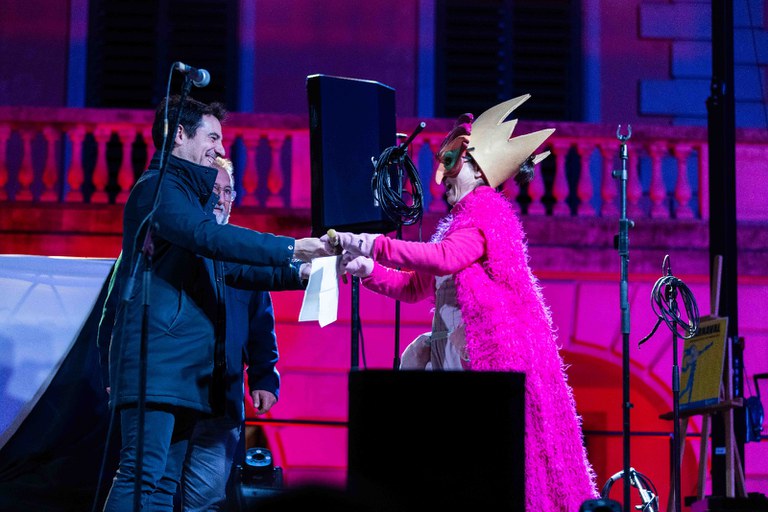 Antes de la entrega de diplomas y premios, se produjo la llegada de la Reina Carnaval y su séquito. El alcalde de Castelldefels, Manu Reyes, le entregó el bastón de mando de la ciudad en un acto en la plaza de la Iglesia.