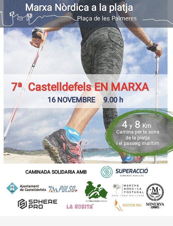 Este domingo 16 de noviembre , Castelldefels vivirá la séptima edición de “Castelldefels en Marcha” , actividad que mezcla la marcha nórdica y Pilatwalk y que combina salud, deporte y solidaridad en el paseo Marítimo y la playa, todo un entorno privilegiado.