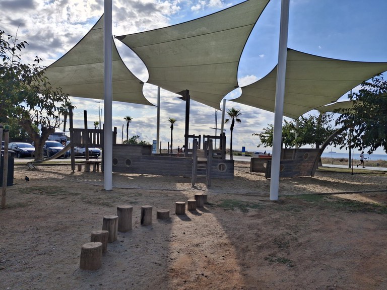El Ayuntamiento de Castelldefels ha puesto en marcha una nueva actuación para la mejora del confort y la seguridad de los más pequeños mientras juegan al aire libre. Se trata de la instalación de una estructura de sombra situada en el popular parque infantil del Barco Pirata, situado junto a la playa (paseo Marítimo, al final de la calle 11).