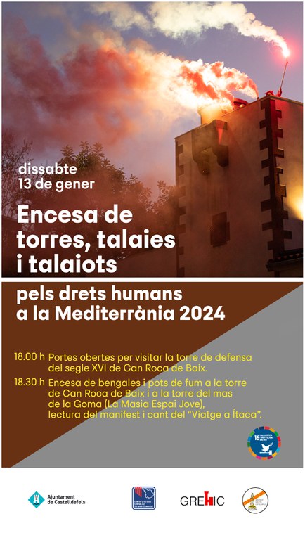 Este sábado, 13 de enero, tiene lugar el encendido de torres, atalayas y talayots por los Derechos Humanos en el Mediterráneo • Las actividades de esta jornada están organizadas por el Ayuntamiento de Castelldefels, el Centre d'Estudis Comarcals del Baix Llobregat, l'Agrupació de Cultura Popular y el Grup de Recerques Històriques de Castelldefels