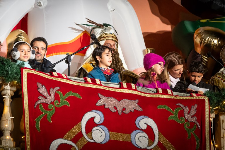 Una vez llegados a la plaza, Sus Majestades saludaron a las familias de Castelldefels desde el balcón del Ayuntamiento, donde recibieron del alcalde Manu Reyes la llave de la ciudad para acceder a todos los hogares de la ciudad y donde escucharon la carta de los deseos comunes. Este año iba a cargo del alumnado de la clase "Guardianes de la Tierra" de 3º de la Escuela Garigot , ganadores del concurso escolar de cartas dirigidas a SSMM los Reyes Magos.