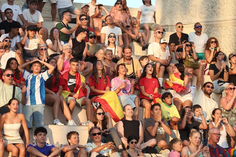 Cientos de personas se reunieron en la plaza de las Palmeras, donde pudieron seguir en directo en una pantalla gigante la final de la Eurocopa femenina de fútbol, que finalmente ganó Inglaterra en la tanda de penaltis · Ambiente, música y pasión por el fútbol femenino protagonizaron la tarde