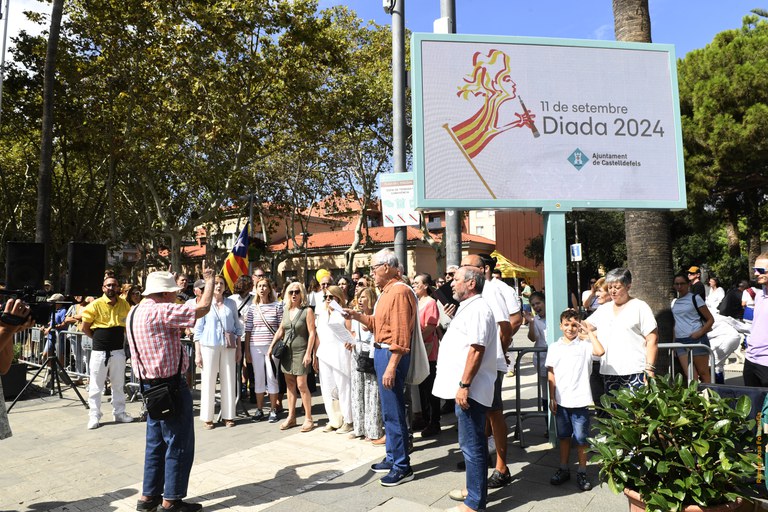 El acto de este año comenzaba a las 12 horas en la plaza de la Iglesia. Previamente, a las 11 horas tuvo lugar la primera parte del Baile de sardanas con el Grupo Sardanista de Castelldefels acompañados por la Cobla Sardanista del Baix Llobregat.
