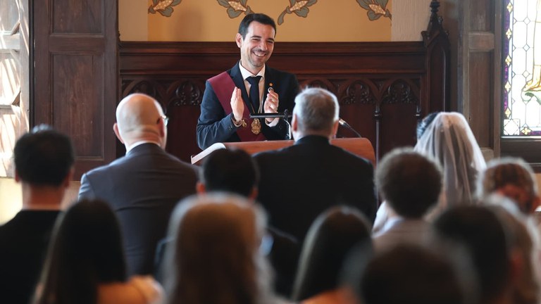 Las ceremonias se llevan a cabo principalmente en la Sala Institucional, un espacio adecuado para acoger actos protocolarios en un ambiente solemne y cuidado.