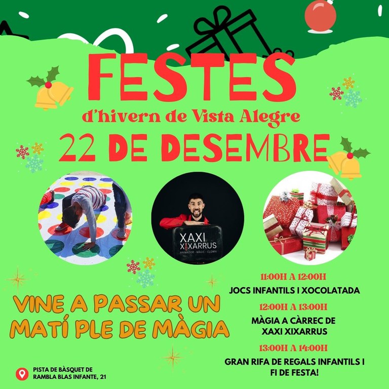 A continuación (12h), el mago Xaxi Xixarrus ofrecerá un espectáculo de magia para todos los públicos ya las 13h tendrá lugar una gran rifa de regalos dirigida a los más pequeños.