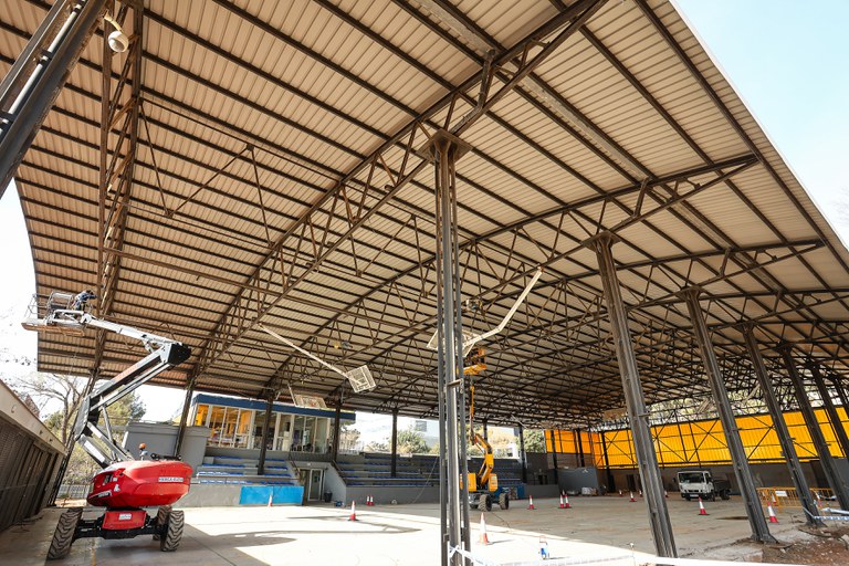 Obras de cobertura de la pista semicubierta de Can Roca / ORIOL PAGÈS.