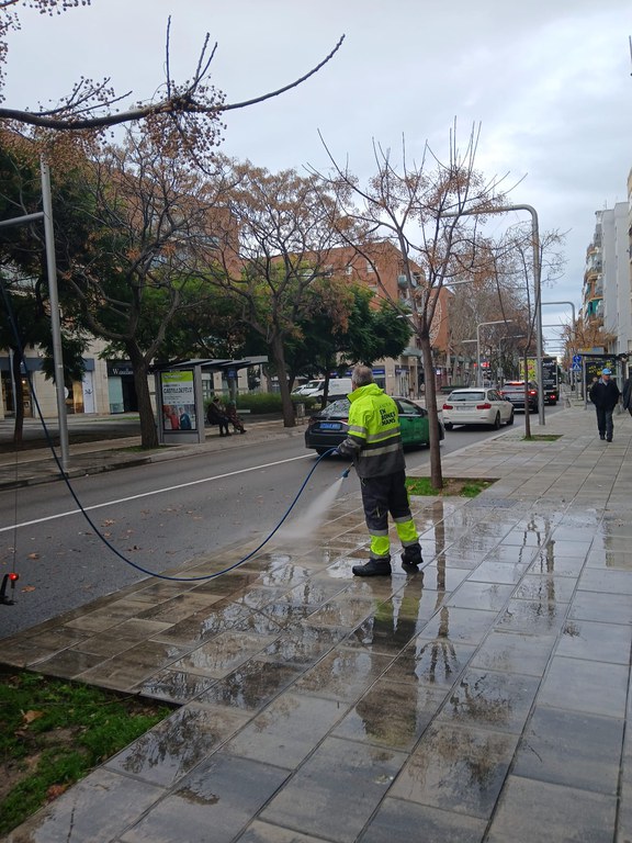 Las tareas incluyen la limpieza con hidropresión de calles, aceras, papeleras, contenedores y otros elementos del mobiliario urbano, así como la retirada de grafitis.